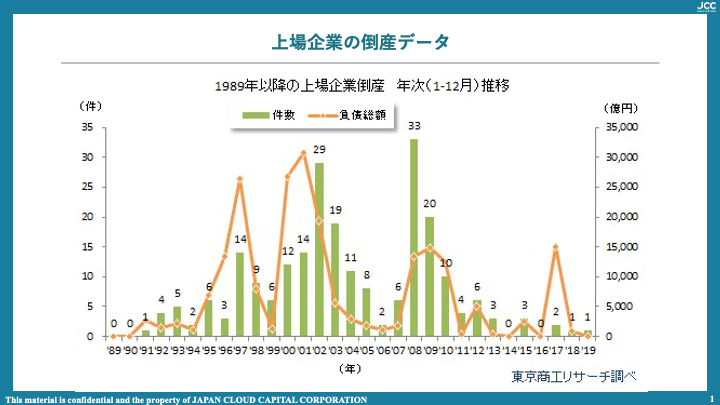 ² 東京商工リサーチ 2019年「上場企業」倒産状況(速報値:12月27日15時現在)