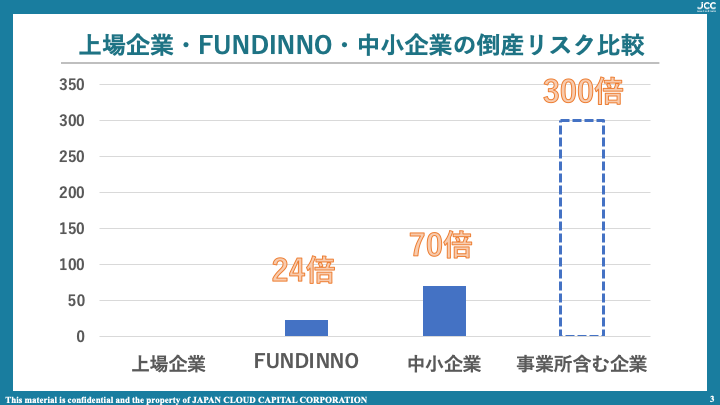 4.上場企業、中小企業、FUNDINNOの倒産リスクの比較