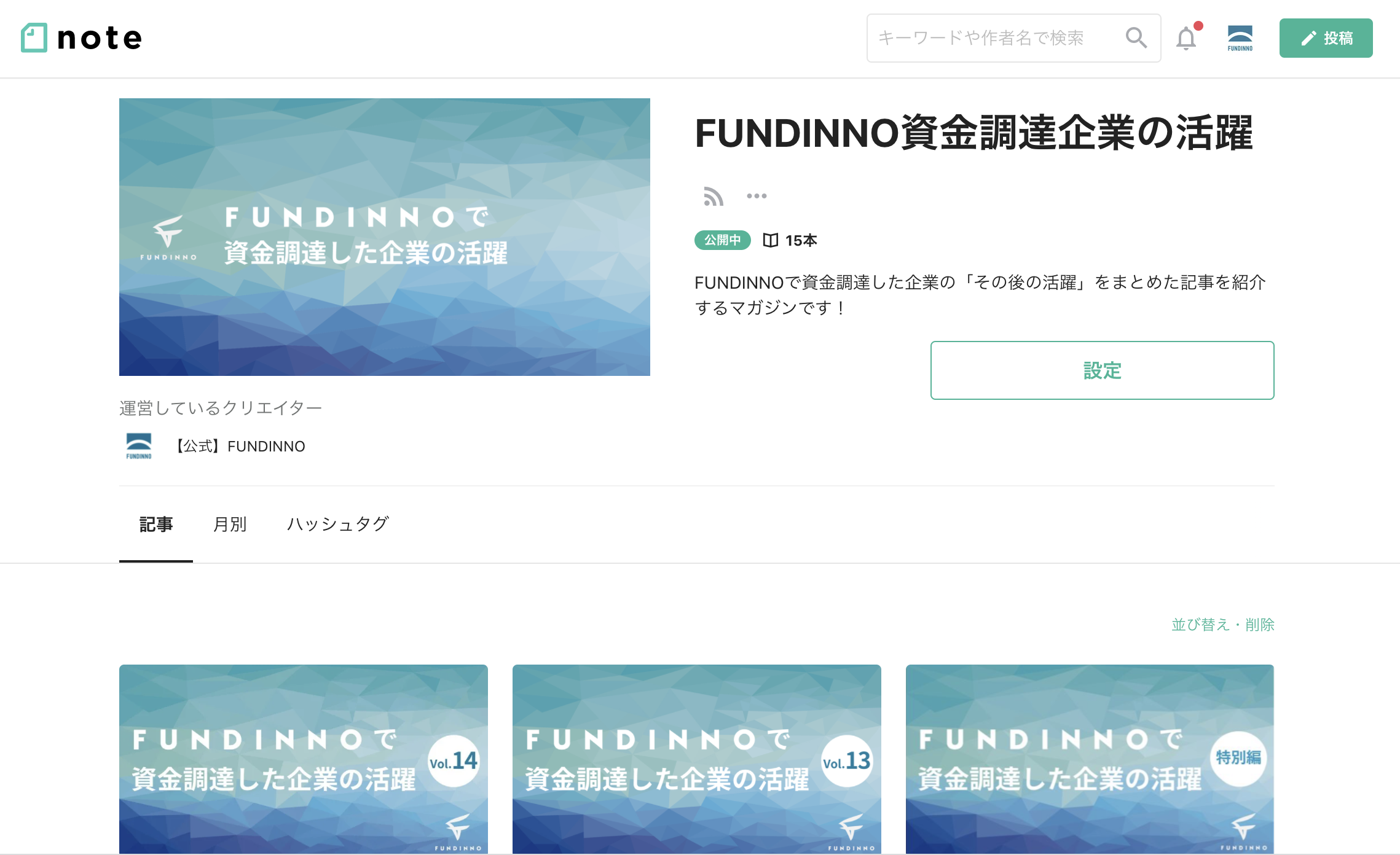 ◆FUNDINNO 公式 note 『FUNDINNO資金調達企業の活躍 』まとめページ