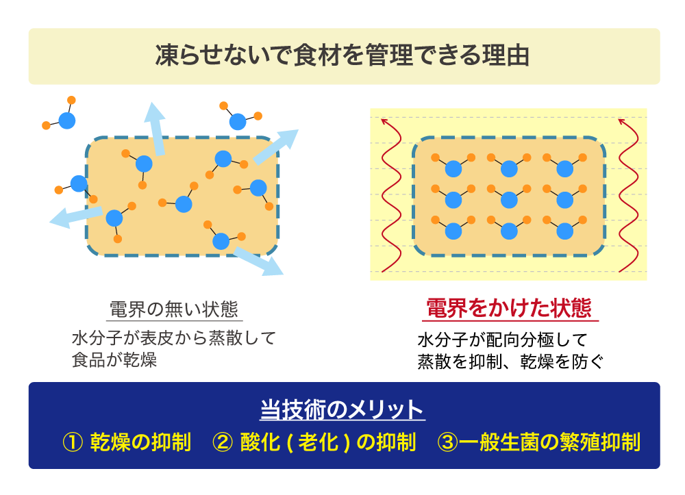 ã«é«é»äœé»å§ããããé»çãçºçããŸããããã«ãããé£æã®æ°ŽååãæŽãã飿ã®ä¹Ÿç¥ãå£åãé²ããŸãããTT-Box©ãã®é®®åºŠä¿ææè¡ã¯ã蟲ç£ç©ãæ°Žç£ç©ãªã©ã®éåžžä¿åæéã«æ¯èŒããŠã3åãã4å以äžã®ä¿åæéãå®çŸããŠããŸãã