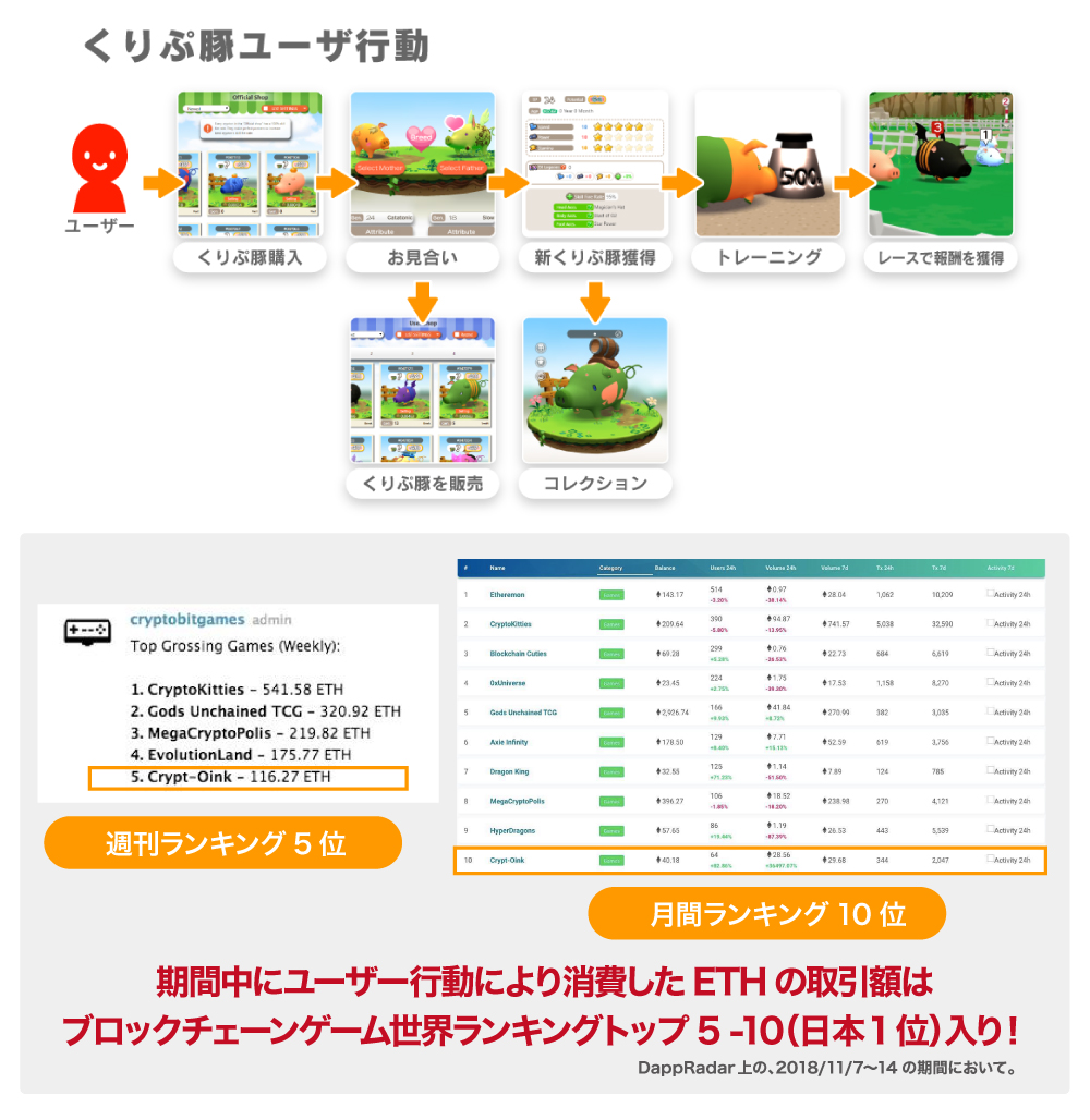 「くりぷ豚」は、仮想通貨イーサリアムで遊べ、日本発のブロックチェーンゲームとして2018年5月にリリースしました。