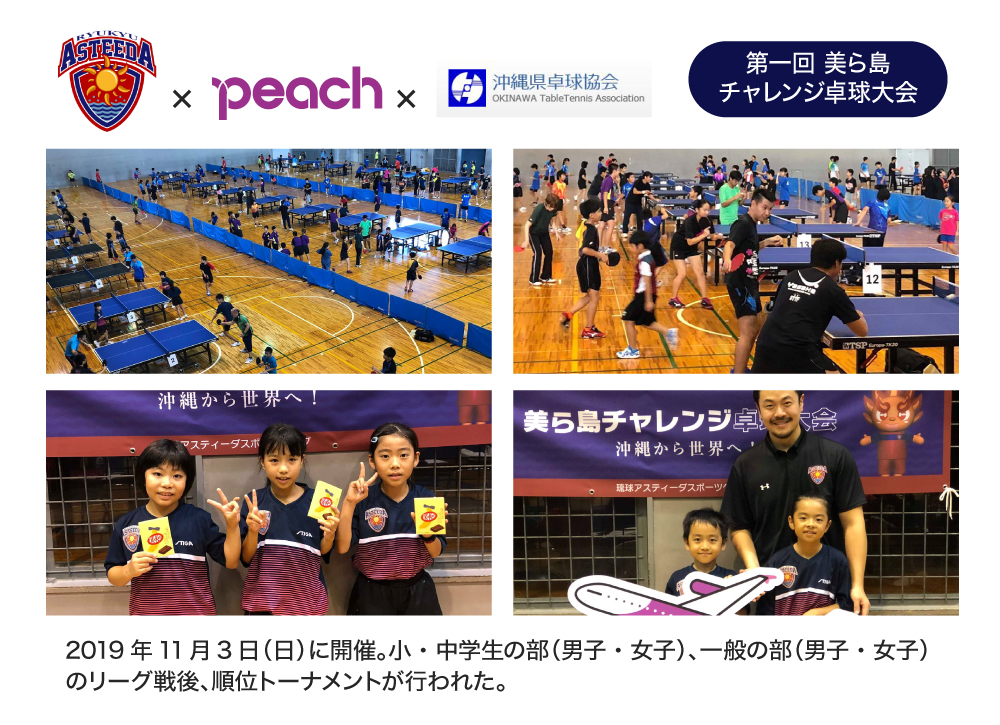 なかでも、沖縄での卓球の浸透のために、沖縄県との連携も行っており、今年11月に開かれた「琉球アスティーダ」主催の「美ら島チャレンジ卓球大会」はその成果です。その他にも、中城村(なかぐすぐそん)へのふるさと納税、うるま市の中学校で卓球部を作るためのコーチ派遣など、至るところで沖縄県との地域連携を深め、「沖縄から世界を」を実現するべく取り組んでいます。