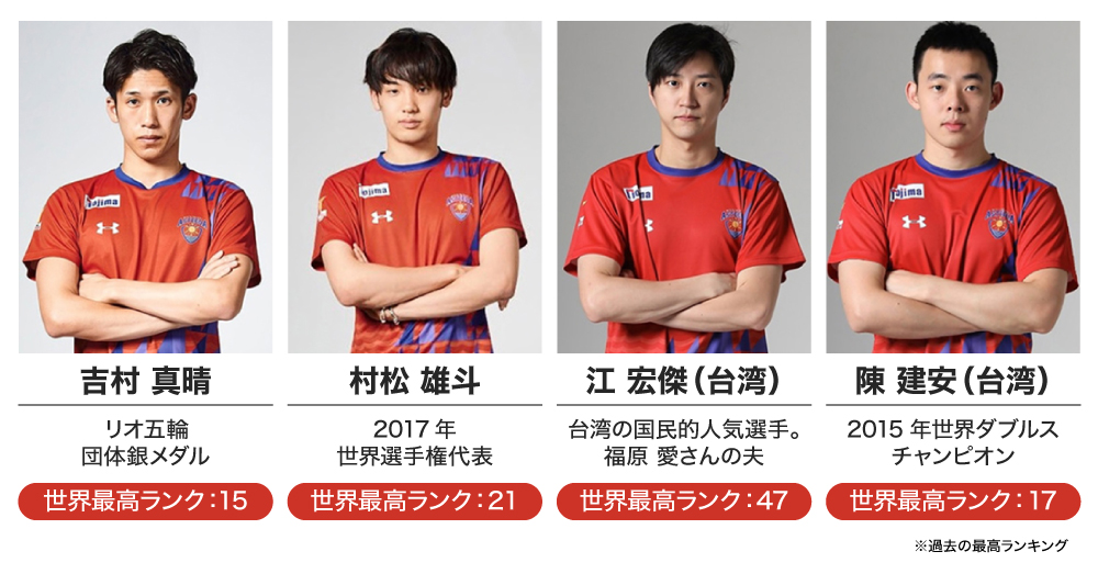 そんな「Tリーグ」に所属する「琉球アスティーダ」は、福原 愛さんの夫「江 宏傑」をはじめ、海外、日本人の世界ランキング上位選手を中心に、これから伸びるジュニア選手を含めて、現在10名が所属しています。チームの実力はリーグ上位で、今シーズンは選手獲得・育成に成功したこともあり、チャンピオンを射程にとらえる好位置をキープしています。