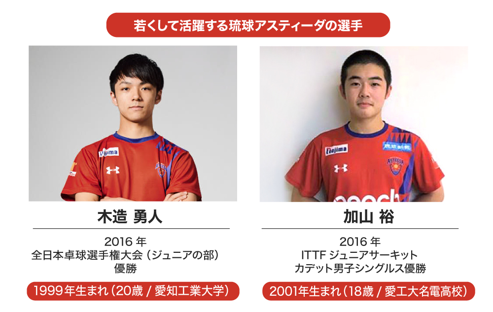 卓球は体格に左右されにくかったり、10代でも世界トップと戦える数少ない競技だからこそ、子どもたちにチャレンジの場が開けると考えています。そのために、「琉球アスティーダ」はジュニア選手とも積極的に契約をしています。
