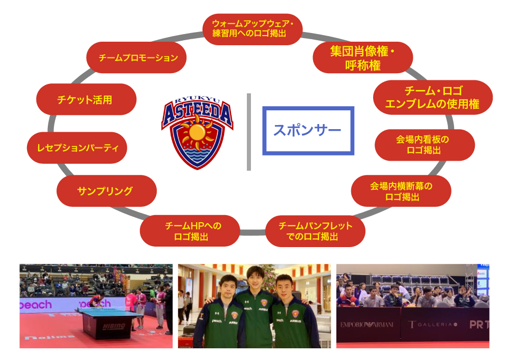 この様に、国内外のスポンサー様が同時に付くことは珍しく、それは、「琉球アスティーダ」が世界を意識していることや卓球の世界的盛り上がりに起因し、それが企業のスポンサード広告の価値の高まりにも繋がるからだと考えています。