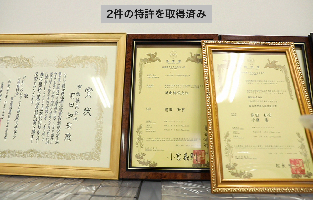 弊社は異種材料接合に関する特許が既に2件権利化され、4件が出願済みです。(特許5953559、特開2016-016429)