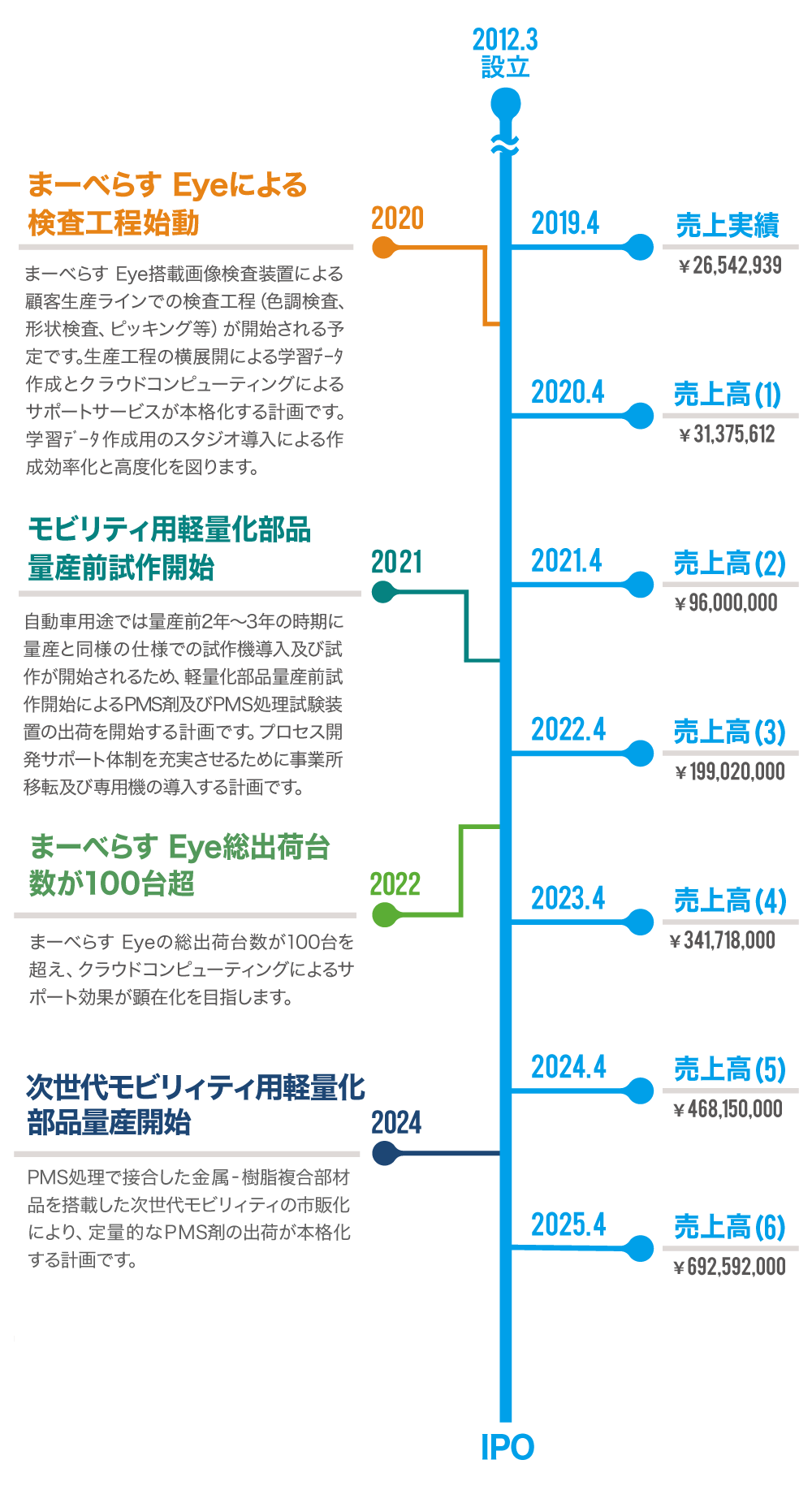 下の表は現時点において今後の経営が事業計画通りに進展した場合のスケジュールです。そのため、今回の資金調達の可否、調達金額によって、スケジュールは変更となる場合がございますので、予めご了承ください。