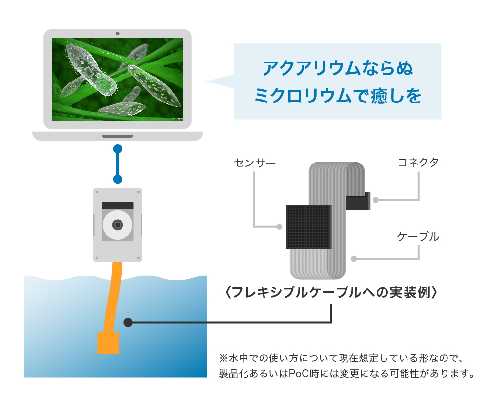 ããã«ãBtoCåããæ³å®ããæ§æ³ãšããŠæ°Žäžã§ã®é¡åŸ®èгå¯ãæ°è»œã«è¡ããããŒãã¿ã€ãåãUSBåãªã©ã®è£œåãèããŠããŸãããã®ããã«çšéããšã«ã€ã³ã¿ãŒãã§ãŒã¹ããã¶ã€ã³ããŠãåäŸã®èªç±ç ç©¶ãªã©å€æ§ãªã·ãŒã³ãžã®æµžéãç®æããŸãã