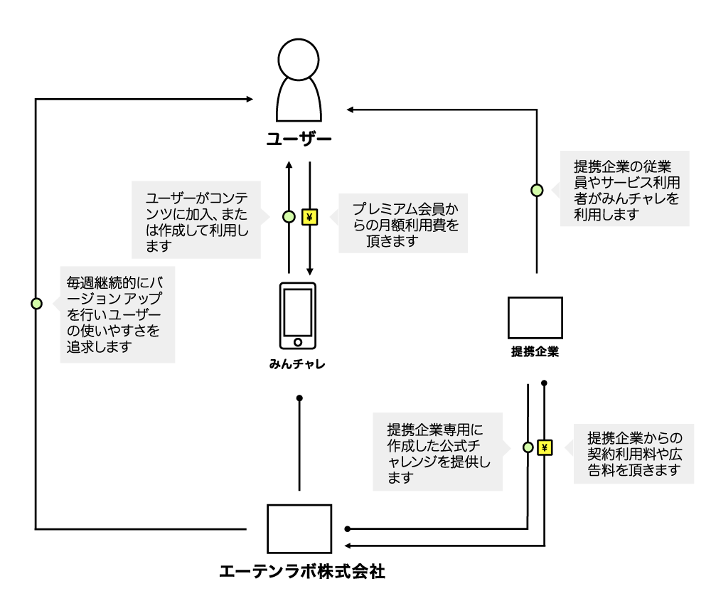 弊社は、三日坊主防止アプリ「みんチャレ」の利用料によりマネタイズします。