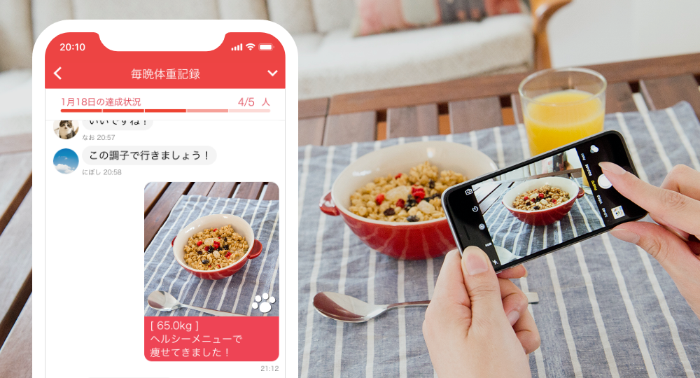 その中で今日実施したことの証拠写真をアップし、励まし合うことで習慣化に結び付くサービスです。