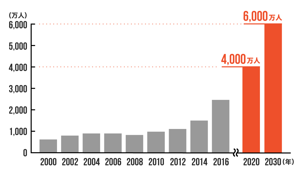 (下記:観光庁調べ「訪日外国人旅行者数の推移」)