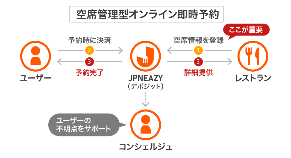 「JPNEAZY」では、専門のコンシェルジュが、訪日外国人客と日本全国のレストランを繋ぐ役割を担い、事前決済にも対応することでこれらの課題を解決していきます。