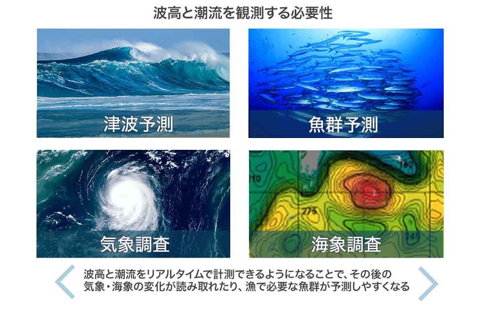 海に囲まれた我が国では、リアルタイムの波高や流れは海の関係者ならば誰でも欲しがる情報です。