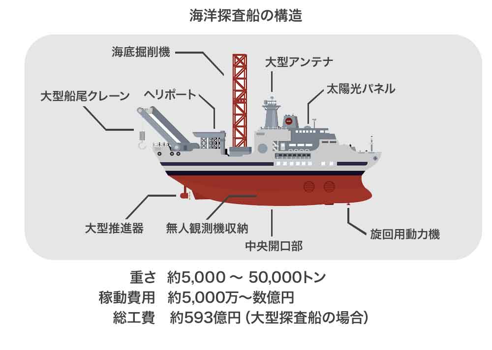 このプロジェクトに関して言えば、探査船を一度動かすだけで合計約200万〜500万円程の費用がかかっています。(探査船種類による。海洋研究開発機構HPより)