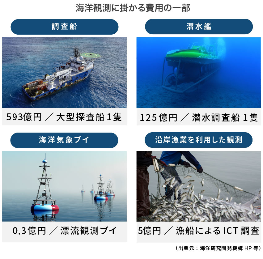 海洋研究には毎年多額の研究費が費やされていますが、未だコストに見合うだけの成果を上げきれていないのが現状です。