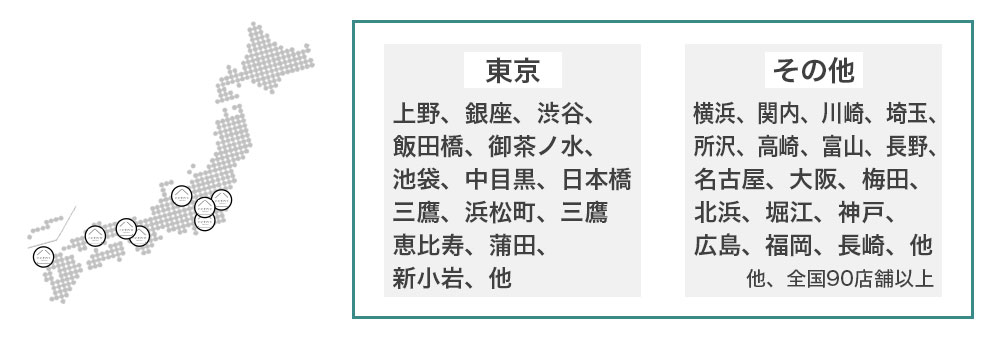 現在、渋谷区や港区などのビジネスエリアにはもちろんですが、世田谷区や大田区、また神奈川県や埼玉県など、「住みたい街ランキング」で上位に上るような地区にも店舗を増やしています。