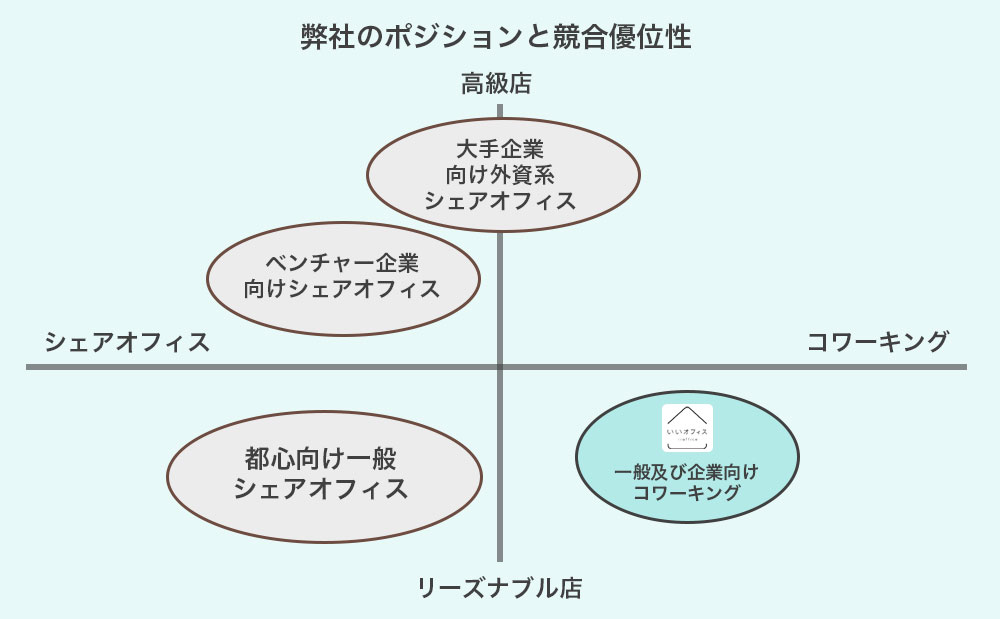 また、競合会社として、外資系でシェアオフィスを展開する企業もあります。しかし、そちらはハイコストで高付加価値モデルであり、かつ都心での展開が主です。
