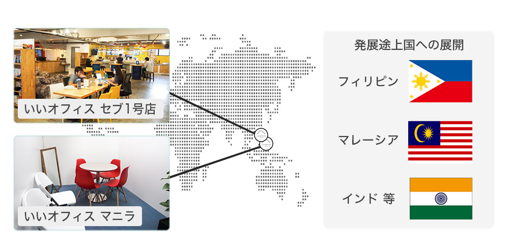 「いいオフィス」は、すでにフィリピンのセブ島を中心に4店舗、海外出店をしております。ここを皮切りに、新興国をはじめ多くの国での展開を目指しています。