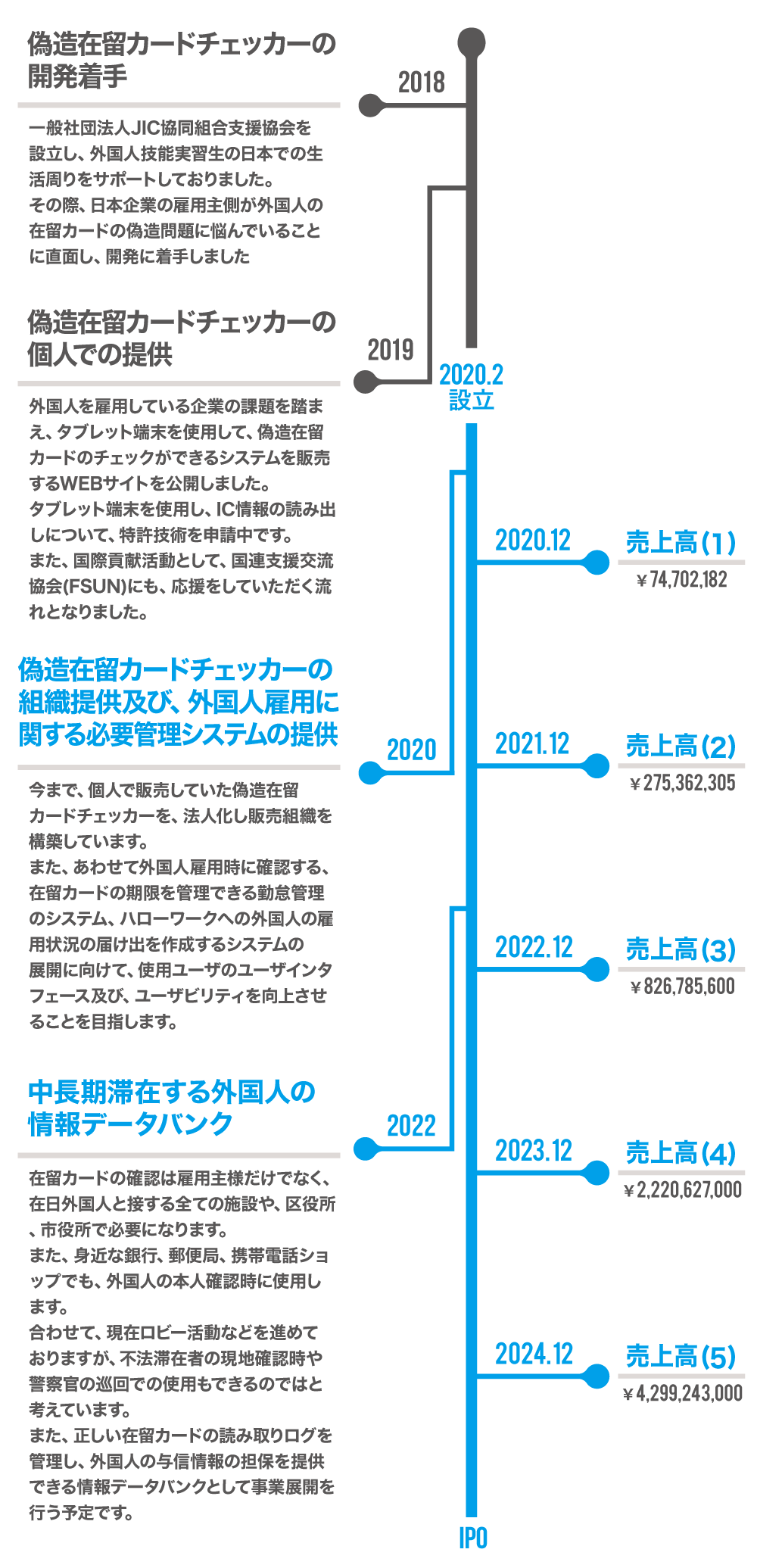 売上高は事業計画を前提としており、発行者の予想であるため、将来の株価及びIPO等を保証するものではありません。また、上記のサービス追加は、今回の資金調達に伴って行われるものではなく、今後、新たな資金調達を行うことによる追加を計画しているものです。なお、新たな資金調達の方法は現時点において未定です。
