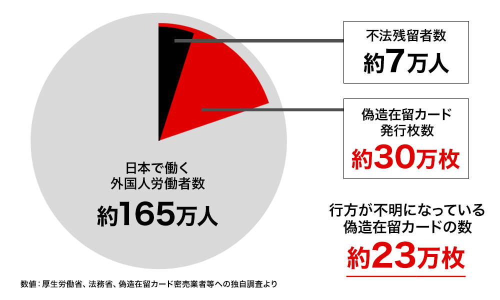 - ・年間約30万枚の偽造在留カードが発行されており、それを使った「不法就労」が横行している