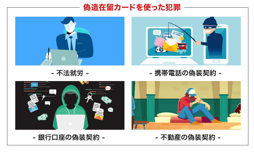 - ・さらに、偽造在留カードを使った「携帯電話の契約」や「通帳の作成」といった、別の犯罪にも繋がりかねない