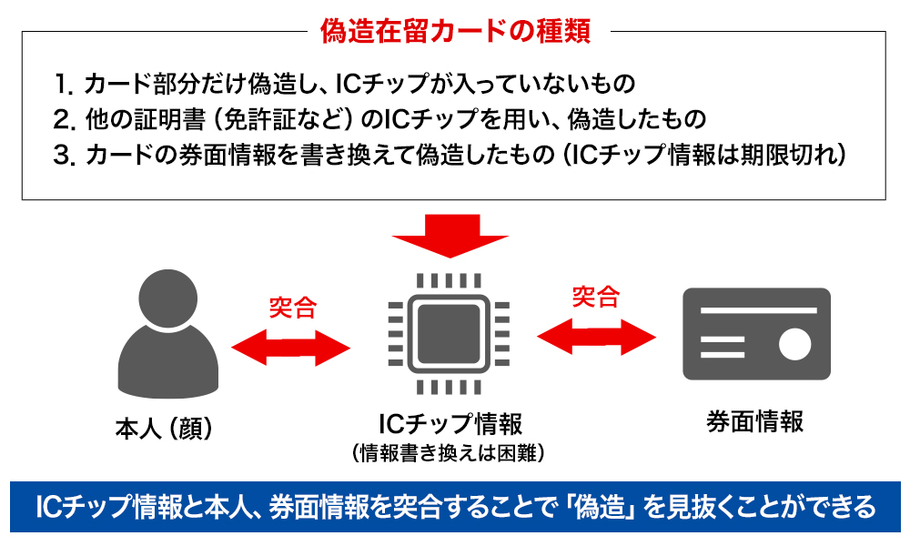 在留カードの中の「ICチップ」を読み取り、偽造をチェック