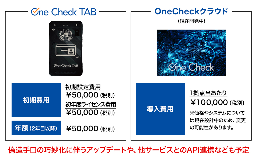 「OneCheckTAB」は買い切り型ではなく、初期費用+年間ライセンス料で提供します。2年目以降も更新が可能です。また、クラウド化による提供も計画しています。