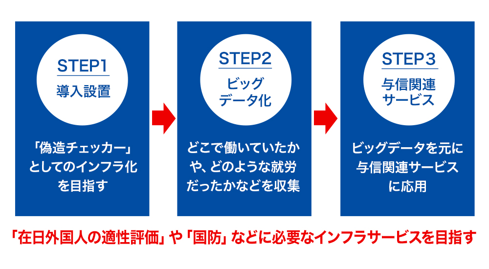 - ・外国人の「就労情報」や「行動情報」をビッグデータ化、外国人の「信用情報のデータ化」に応用