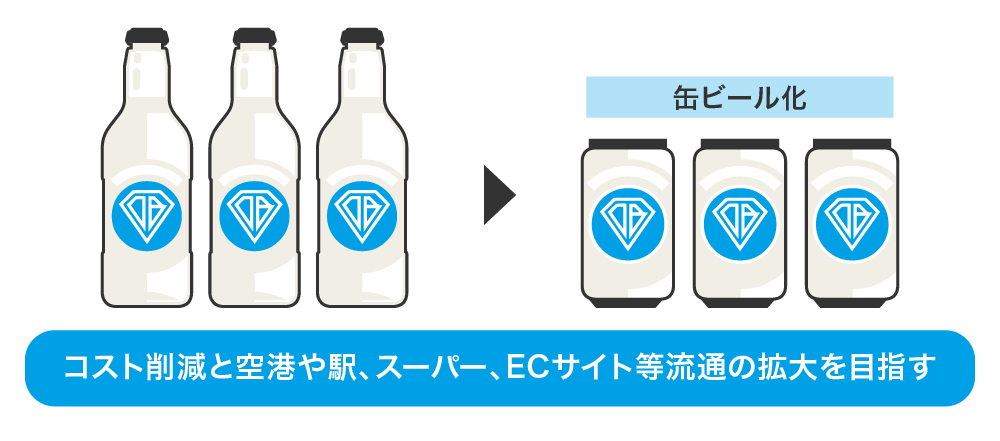 また、これまでは“瓶”による生産と自社(店舗)消費が中心でしたが、クラフトビールの“缶”への支持が世界的に広まっていることを受けて、「缶ビール」化を推進していきます。
