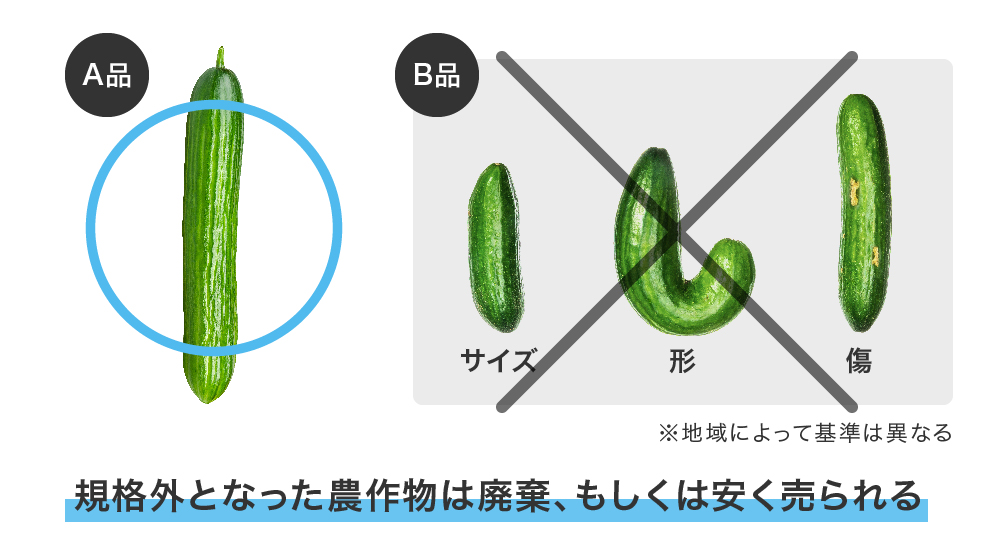 - ・農業生産者を悩ませる、食べられるのに市場に出せない規格外作物の廃棄