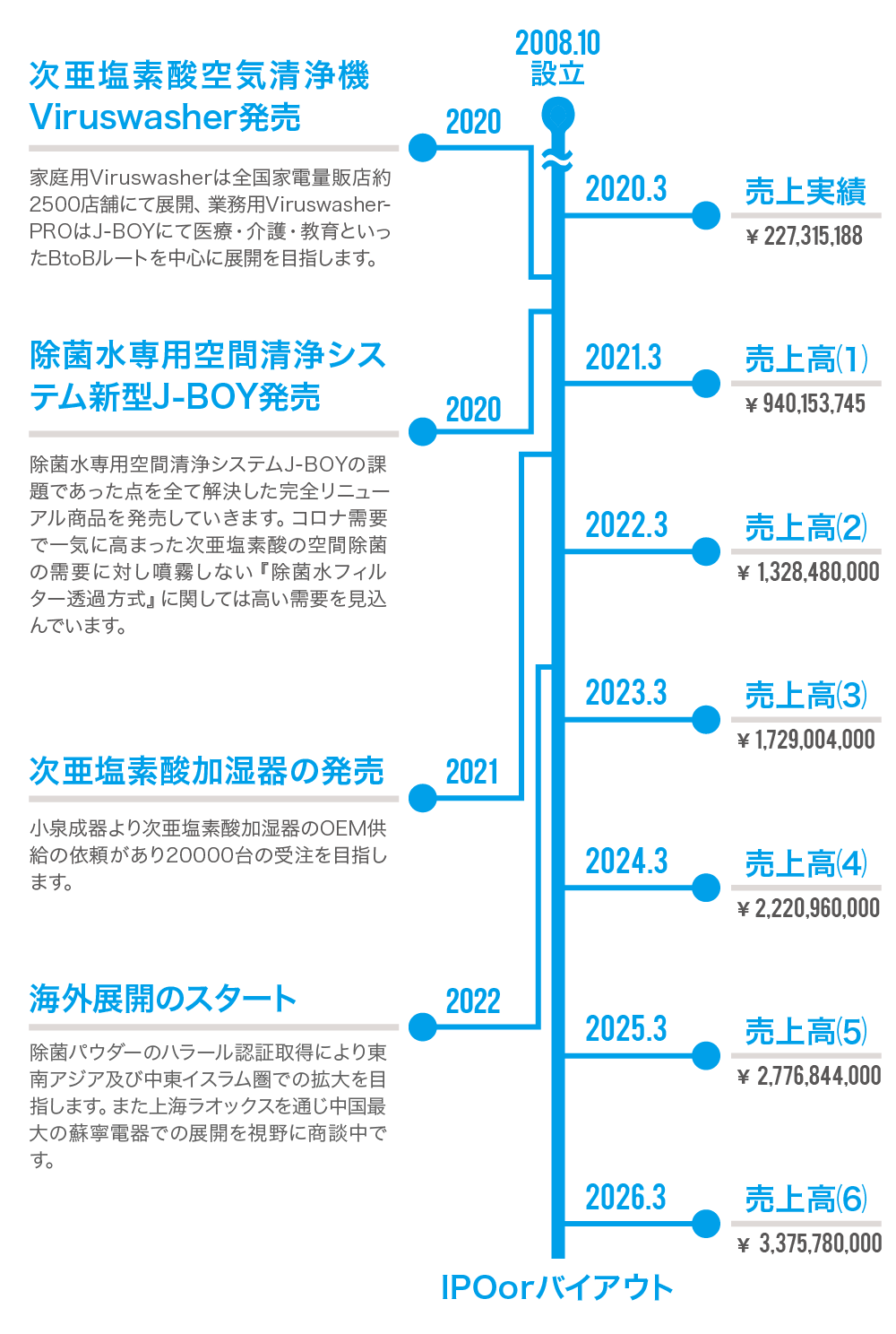 「ウイルスウォッシャー」を実績を持った両商品とクロスセルしながら展開していくことで「空気浄化の第一人者」としてのブランドイメージを確立し、国内だけでなく世界への進出を目指していきます。