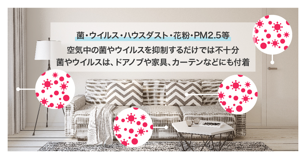 さらに、ウイルス感染や臭いのもととなる物質も身の回りに付着、浮遊しているのです。
