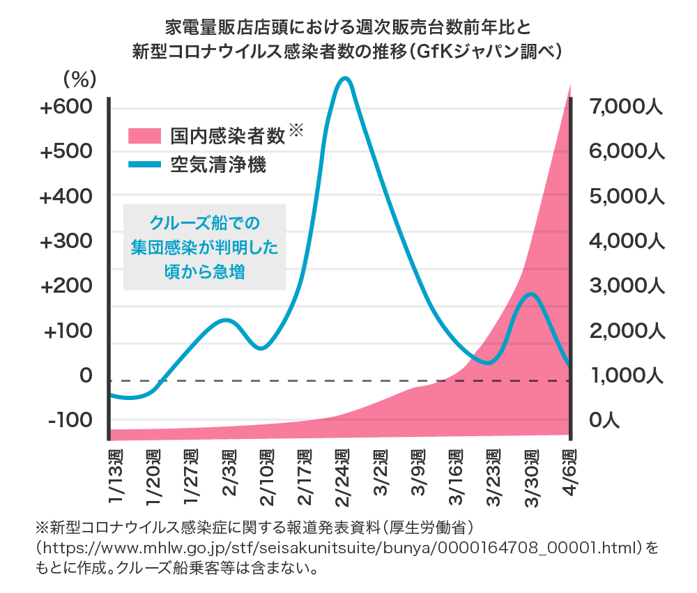また、WHOの発表によると世界人口の92%は「Unhealthy(健康に良くない)」とされる空気を吸いながら生活しており、これは世界全体の健康状態にとって危険な兆候であると述べられてます。こうした多様化する空気問題により、除菌脱臭機や空気清浄機の需要は高まるばかりです。GfKジャパンの調べによると2018年における空気清浄機の国内販売台数は220万台とありますが、近年のコロナウイルスの影響もあり急増するものと見込んでいます。