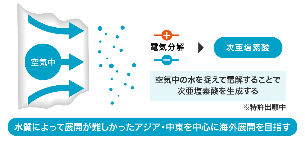 - ・次亜塩素酸水生成技術を応用して海外展開を目指す