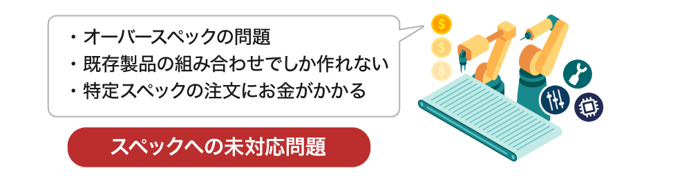 もう一つの要因は、導入企業が望む“スペックへの未対応問題”です。中小企業は小スペースにおいて様々な工程を同時にこなす企業特有の技術があります。その技術は千差万別で、どこも同じ仕様のFAで済むものではありません。