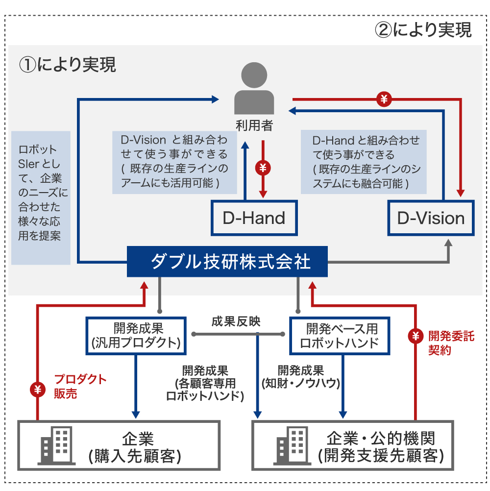 ① 大手商社(重工系)などへの納品実績を持つ「ロボットハンド開発事業」の開発成果・採択実績を用いて、更に弊社の技術を訴求〜向上させていきたいと考えています。また、以下の施策と併せてスケール化を図って行くことを目指します。