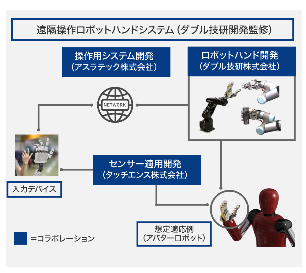 今回、ダブル技研さんが挑戦される先進的な遠隔操作ロボットシステム開発は、この新しい領域へのロボット展開の扉を開く大きな一歩になると期待しておりまして、ヒューマノイドロボットで多数の採用実績を持つ弊社の触覚センシング技術で、開発に貢献したいと考えております。