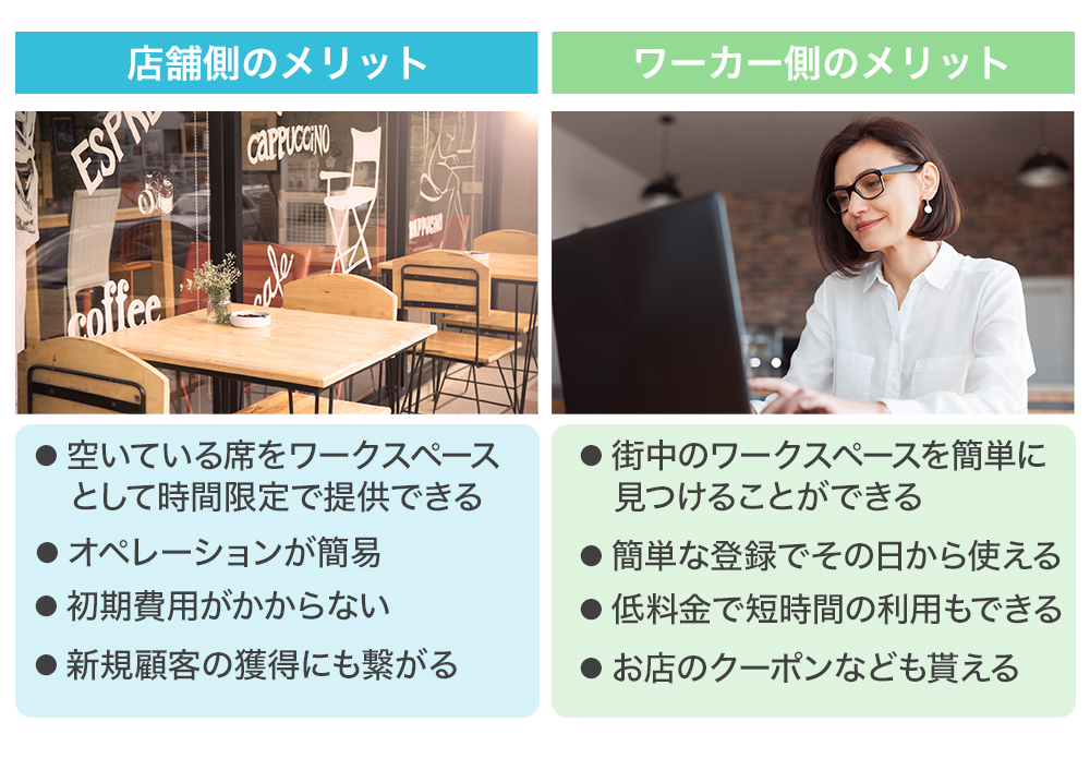 この空いている席を埋めたいと考えるお店は沢山あります。しかし、独自でテレワークプランを考案し打ち出したとしても本業以外の目的で集客をするノウハウを持ち合わせていないことや、本業以外で高額なシステム投資を行う予算もなく、模索している状況なのです。