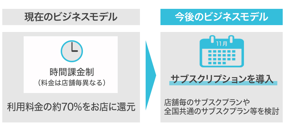 更に、導入店舗・ワーカーを増やすとともに、マネタイズ方法も多様化させていきます。現在の時間課金制に加え、1店舗が使い放題の店舗限定サブスクリプションプラン(サブスクプラン)、系列全店舗が使い放題になるグループサブスクプラン、「テレスペ」全体が使い放題のテレスペサブスクプランなど、時間課金制に加え様々なサブスクプランを用意することを計画しています。