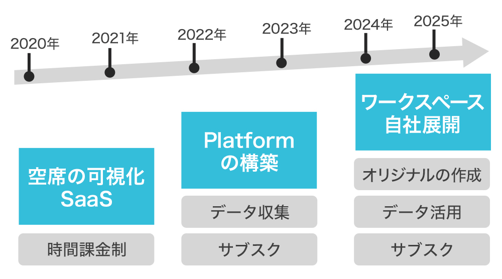 サブスクリプションにして収益を積み重ねたら次は、ワークスペースの情報が流れるプラットフォームを構築し、データを収集します。その後は、そのデータを自社のノウハウとして活用し、自社でもワークスペース運営を開始し、利益率を上げていきたいと考えています。そのため、弊社は最初にSaaS形式で参入しサブスクリプションでの収益を積み上げることを最初のミッションとしています。