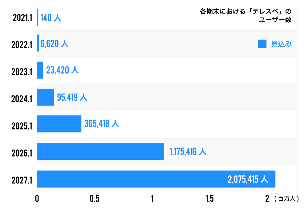 大手チェーンを獲得できる弊社の営業力と、店舗が操作しやすいUX設計を実現できる事業モデルにおいて競合優位性を持ち、ユーザーの増加に応じてサブスクリプションを導入し、安定したマネタイズと市場規模の拡大にあわせて仕様を変更していくことで、「テレスペ」はマーケットにおいて盤石な立ち位置を確保できると考えています。