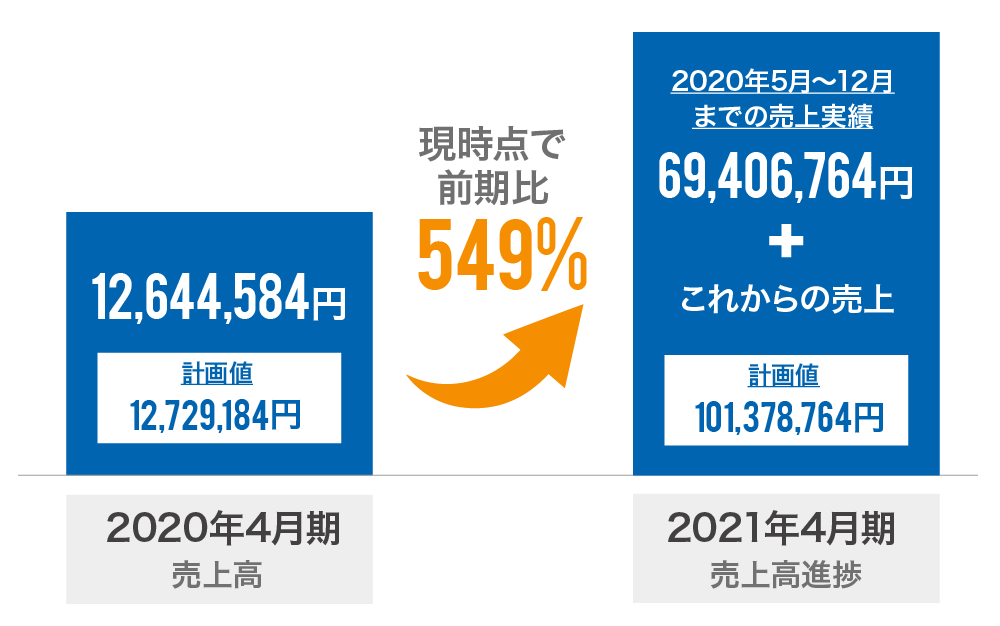 å ·äœçã«ã¯ãåæå£²äžé«å®çžŸ12,644,584åã«å¯Ÿãã仿売äžé«å®çžŸïŒ2020幎5æã12æïŒã¯ãã§ã«ã69,406,764åã«ãªã£ãŠããŸããããã¯ãåææ¯ã§çŽ549ïŒ ã«ãªã£ãŠããŸãã