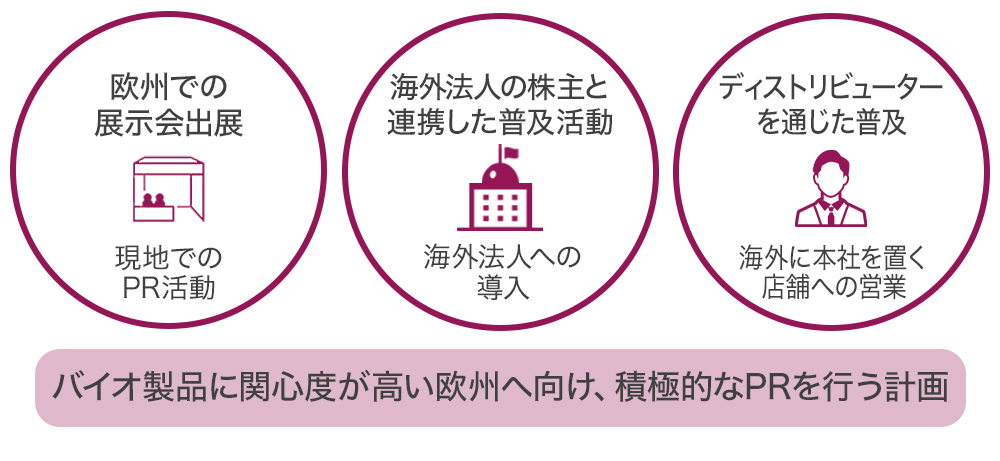 既に、欧州に本社を置くメーカーからも商談を頂いており、既存製品の代替素材としての製品開発も進めています。欧州は、バイオ製品への関心度が高い地域なので、「PAPLUS®」製品が同地域で認められれば世界的な認知度も一気に向上すると考えています。そのためにも、早々に海外マーケティング体制を整備するとともに、新型コロナウイルスが収束次第、欧州での展示会出展をはじめとした積極的な営業活動を行う予定です。