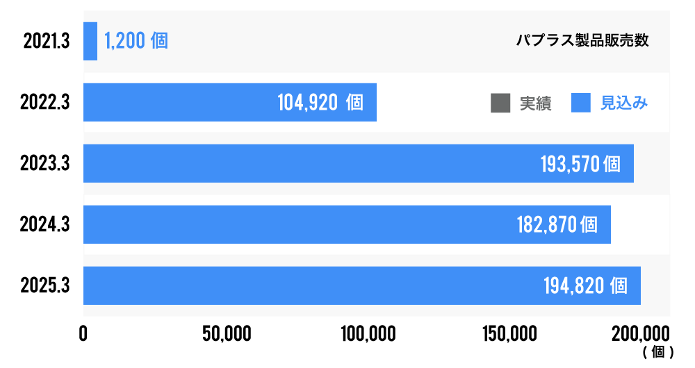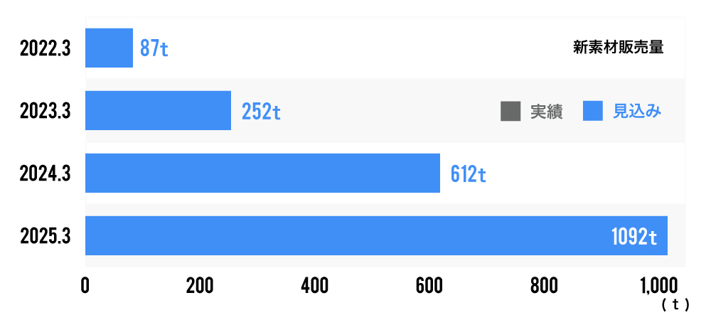 2023年度末までに、新素材の販売総重量250トンの突破を計画しています。