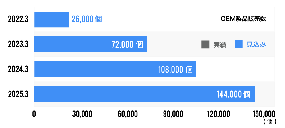 2024年度末までに、OEM製品の総販売数10万個の突破を計画しています。