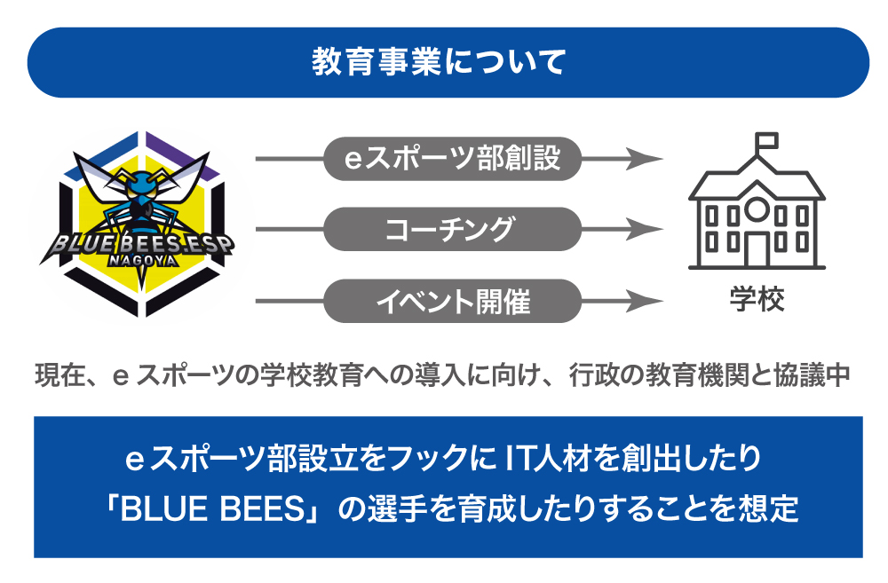 æè²äºæ¥ã¯è¡æ¿ã®æè²æ©é¢ãšé£æºããçå ã®é«æ ¡ã«eã¹ããŒãéšåµèšã®æ¯æŽãè¡ã£ãŠãããŸããããã«ãããåŒç€Ÿã®éžæãçåŸã«ãã¬ã€ãæå°ãããšãã£ãæ¯æŽãè¡ãªãããIT人æã®åµåºã«ç¹ããŠåããŸãã