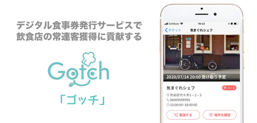 弊社は、既存の飲食店が新たな顧客を獲得するためのツールとして、デジタル食事券を発行し、それを第三者にプレゼントできるサービス「Gotch(ゴッチ)」を開発いたしました。
