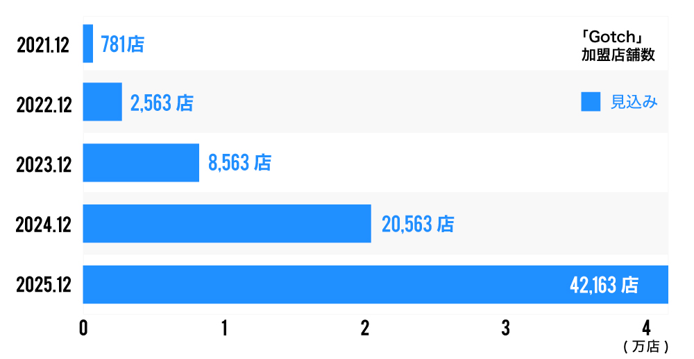 2024年度内に「Gotch」アプリの導入店舗数を全国20,000店舗へ拡大する計画です。大手チェーン店でも導入してもらえるようサービスをアップデートさせていく計画です。