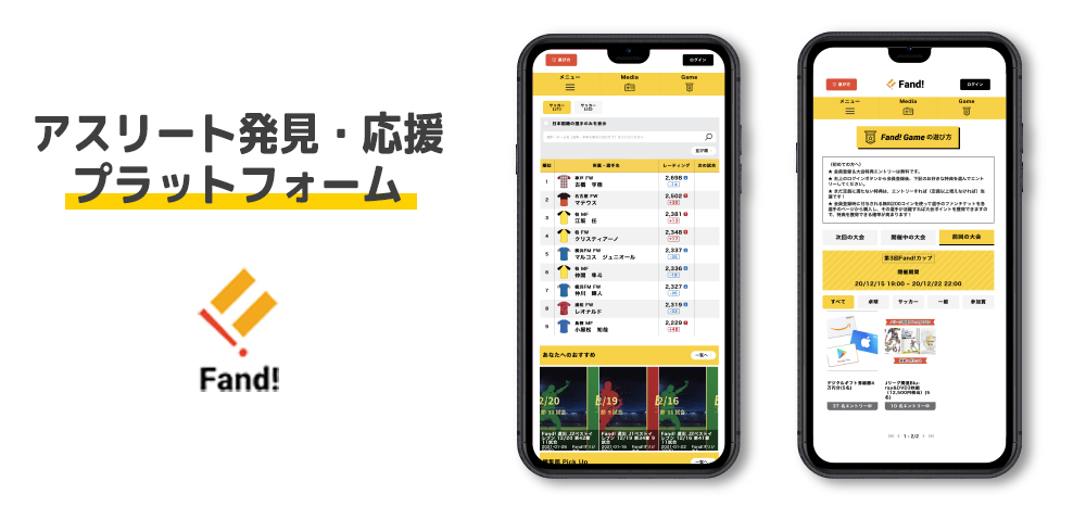 弊社は、さまざまなスポーツで活躍するアスリートの活躍度を試合ごとにレーティングし、ファンが好きなアスリートのレーティングやニュース/試合ハイライトなどの最新情報を簡単に入手したり、レーティングを活用したゲームに参加して賞金などを獲得できるプラットフォーム「Fand!」を運営するスポーツテックベンチャーです。