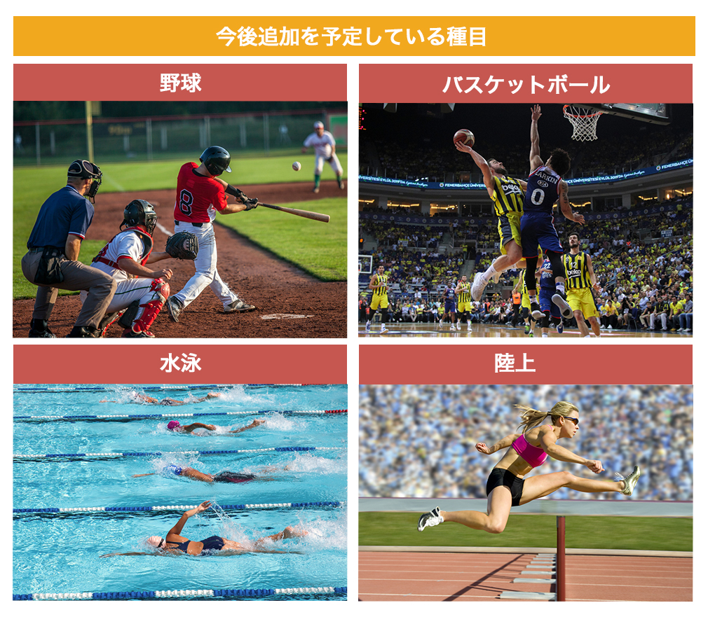 バスケや野球といった人気のチームスポーツはもちろん、東京オリンピックを見据えて陸上、水泳など、オリンピック競技でもある個人スポーツにも対応を進め、幅広いスポーツのアスリートをフィーチャーするプラットフォームへとアップデートしていきます。